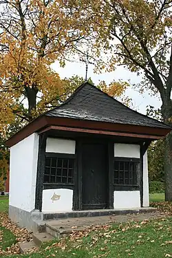 Das fast quadratische Gebäude hat drei Außenwände in Massivbauweise. Lediglich die Eingangsseite besteht aus Fachwerk. Hier wurde eine neue Tür eingesetzt. Das Haus wurde stark überarbeitet. Auf dem Gebäude befindet sich ein Pyramidendach. Der Altar im Inneren ist erneuert worden.