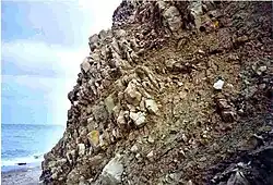 Heiligenhafener Gestein (auch „Heiligenhafener Kieselgestein“[1]) ist ein in Schleswig-Holstein vor allem in den südlichen Landesteilen lokal sehr häufig vorkommendes Geschiebe. Sein Name geht auf ein Schollen-Vorkommen in einem Kliff („Hohes Ufer“) nahe Heiligenhafen in der Hohwachter Bucht zurück. Ein gleichartiges Vorkommen in der Nähe von Kühlungsborn (Mecklenburg-Vorpommern) wird dort als „Scherbelstein“ bezeichnet.