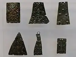 Von großer Bedeutung für die Geschichte der kretischen Kunst und für die Geschichte des Heiligtums selbst sind die auf seinem Gebiet gefundenen gravierten und ausgeschnittenen Bronzeplatten aus der Zeit vom 7. bis zur Mitte des 5. Jahrhunderts v. Chr. Die Art der Fundstücke legt nahe, dass es sich um separate Opfergaben handelte und nicht um dekorative Anhänge, die an einem größeren Objekt angebracht waren. Einige von ihnen stellen männliche Anbeter dar, die ein Tier oder einen Teil davon zum Opfer bringen. Andere könnten den Gott Hermes wiedergeben. Einige männliche Figuren sind mit Bogen und Köcher bewaffnet. Ikonografische Elemente der Figuren, die dem oben erwähnten Zentauren gemeinsam sind, weisen auf die Existenz einer Werkstatt hin, in der sowohl Figuren als auch Plaketten hergestellt wurden.[14]