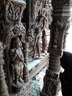 Der größte hölzerne Gebäudekomplex des Landes (Baubeginn 1981) ist mit aufwändigen Schnitzarbeiten verziert und zeigt mythologische Figuren verschiedener Religionen und Kulturen. Die Kunstwerke aus Thai-, Khmer-, laotischer und chinesischer Kultur sind eine Erinnerung an die Architektur und den Kunststil des Zeitalters des Rattanakosin. Das Bauwerk ist 105 Meter hoch, hat bei einer ungefähren Länge von knapp 100 Meter eine Grundfläche von annähernd zwei Rai und liegt in einem Park mit einer Fläche von 70 Rai. Bis zur Vollendung sind noch einige Dekaden vorgesehen.