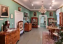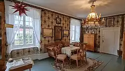 Die weitgehend original erhaltenen Wohnräume vermitteln einen Eindruck der Wohnkultur des 19. Jahrhunderts. Handbedruckte Tapeten und erlesenes Biedermeiermobiliar zeugen von Gediegenheit und Eleganz. Darüber hinaus verfügt das Museum über eine bemerkenswerte Gemäldesammlung. Herausragend dabei sind Werke von Anton Graff, Gustav Grunewald, Johann Gustav Grunewald und Adolf Zimmermann. Vielfältige historische Uhren, filigran gearbeitete Haarbilder[5] und eine reizvolle Sammlung von Vedutentassen mit Herrnhuter Motiven runden das Bild ab.