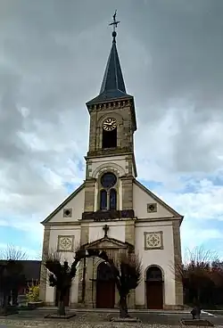 Heimersdorf, Pfarrkirche, geweiht 1860Kirche St. Peter und Paul, ein Bauwerk des Zweiten Kaiserreichs, geweiht 1860. Aufwändig in historisierenden Formen gestaltete Westturmfassade. Innenraum noch spätklassizistisch. Rinckenbach-Orgel.