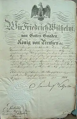 - Patent zum Steuer-Rath durch Friedrich Wilhelm IV. (1844)