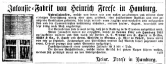 Freese kam 1876 nach Berlin, um die Berliner Filiale der väterlichen Jalousienfabrik zu übernehmen. Die „Hamburg-Berliner Jalousie-Fabrik Heinr. Freese“ wurde zum führenden deutschen Unternehmen für Jalousien und Holzpflaster mit Stammbetrieb in der Rungestraße 18 a, und Filialen in Hamburg, Breslau und Leipzig. 1923 verlieh die Staatswissenschaftliche Fakultät der Universität Tübingen Freese die Ehrendoktorwürde (Dr. rer. pol. h. c.).