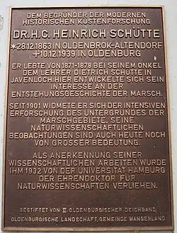 Zugleich befasste sich Schütte auch mit der Geschichte der Menschen und mit der Besiedlung des Küstenraumes. Seine Erkenntnisse fasste er in dem 1935 erschienenen Werk Das Alluvium des Jade-Weser-Gebiets zusammen.