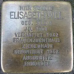 - Am 12. Februar 2009 wurden für Elisabeth und Heinrich Will vor dem Haus Friedrichstraße 8 in Gießen Stolpersteine durch den Kölner Künstler Gunter Demnig verlegt.