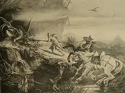 In Unterwalden beim Dorf Wyler hauste in der uralten Zeit ein scheußlicher Lindwurm, welcher alles, was er ankam, Vieh und Menschen, tötete und den ganzen Strich verödete, dergestalt, daß der Ort selbst davon den Namen Ödwyler empfing. Da begab es sich, dass ein Eingeborener, Winkelried geheißen, als er einer schweren Mordtat halben landesflüchtig werden müssen, sich erbot, den Drachen anzugreifen und umzubringen, unter der Bedingung, wenn man ihn nachher wieder in seine Heimat lassen würde. Da wurden die Leute froh und erlaubten ihm wieder in das Land; er wagt' es und überwand das Ungeheuer, indem er ihm einen Bündel Dörner in den aufgesperrten Rachen stieß. Während es nun suchte, diesen auszuspeien und nicht konnte, versäumte das Tier seine Verteidigung und der Held nutzte die Blößen. Frohlockend warf er den Arm auf, womit er das bluttriefende Schwert hielt, und zeigte den Einwohnern die Siegestat, da floß das giftige Drachenblut auf den Arm und an die bloße Haut, und er mußte alsbald das Leben lassen. Aber das Land war errettet und ausgesöhnt; noch heutigestags zeigt man des Tieres Wohnung im Felsen und nennt sie die Drachenhöhle.
