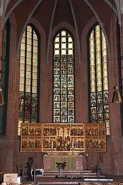- 1934: Vier Buntglasfenster in der Matthäuskirche Lehrte (Weihnachten, Kreuzigung, Auferstehung, Himmelfahrt)[14]