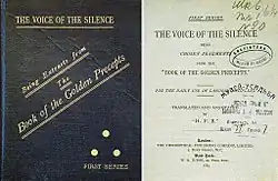 Im Oktober 1888 kam es zur Publikation ihres Hauptwerks, The Secret Doctrine – the Synthesis of Science, Religion, and Philosophy (deutsch: Die Geheimlehre).[88] Im Jahre 1889 publizierte Blavatsky zwei weitere Bücher: The Voice of the Silence (deutsch: Die Stimme der Stille) und The Key to Theosophy (deutsch: Der Schlüssel zur Theosophie). The Voice of the Silence ist ähnlich wie The Secret Doctrine als Übersetzung angeblich sehr alter Texte konzipiert und handelt vom Aufstieg zu höheren Ebenen des Bewusstseins, während The Key to Theosophy eine populäre Einführung in Blavatskys Theosophie gibt.[89]