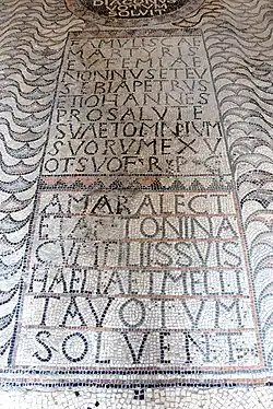 - ↑ Rajko Bratož: Der Metropolitansprengel von Aquileia vom 5. bis zum frühen 7. Jahrhundert, in: Volker Bierbrauer, Hans Nothdurfter (Hrsg.): Die Ausgrabungen im spätantik-frühmittelalterlichen Bischofssitz Sabiona-Säben in Südtirol I. Frühchristliche Kirche und Gräberfeld, C. H. Beck, München 2015, S. 674.