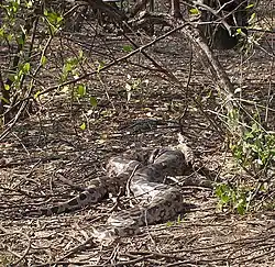 Ihre bevorzugten Versteck- und Ruheplätze sind Erdhöhlen, Felsspalten, verlassene Säugetierbauten, Termitenhügel, hohle Baumstämme, Mangrovenwurzeldickicht und hohes Gras.[2]