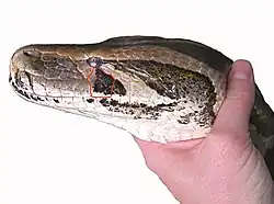 Porträt von Python molurus: ein Oberlippenschild erreicht das Auge