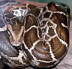 3. a b S. Bhupathy: Blotch structure in individual identification of the Indian Python (Python molurus molurus) and its possible usage in population estimation. Journal of the Bombay Natural History Society Band 87, Heft 3, 1990, S. 399–404.