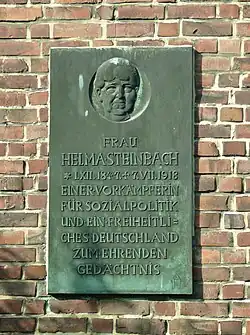 Helma Steinbach war eine Tochter einer verarmten Kaufmannsfamilie. Sie verdiente ihren Lebensunterhalt als Wirtschafterin, Näherin, Schneiderin, Plätterin und Vorleserin. Die Fabrikarbeiter ließen sich in vielen Betrieben aus Büchern und Zeitungen vorlesen, um sich politisch und allgemein zu bilden. Bei dieser Tätigkeit lernte Steinbach den späteren Gewerkschaftsfunktionär und Reichstagsabgeordneten Adolph von Elm kennen. Steinbach war 10 Jahre älter als von Elm, eine vermutlich aus finanziellen Gründen geschlossene Ehe löste sie schon bald wieder auf. Dennoch blieben die beiden über 30 Jahre lang politisch verbunden und befreundet. Steinbach war eine wichtige Referentin in der Frauenagitation, galt als eine der wichtigsten und erfolgreichsten Rednerinnen. Sie war in verschiedensten Gewerkschaften tätig und hat selbst einen „Reichsverband der Plätterinnen“ gegründet. In Hamburg hat sie versucht, einen Streik der Plätterinnen zu organisieren, was ihr teilweise gelang, z. B. in dem holsteinischen Vorort Stellingen.[1]