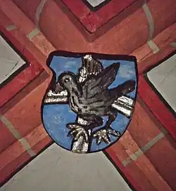 Pfarrkirche St. Ulrich (Deidesheim), Wappenschlussstein des Bischofs Ludwig von Helmstatt (Familienwappen auf Speyerer Bistumswappen aufgelegt)