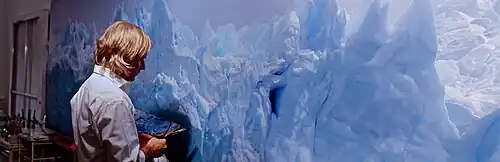 2017 beginnt er sein bisher größtes Gemälde. Auf einer 2 × 12 Meter großen Leinwand malt er den bekannten Perito-Moreno-Gletscher