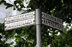 Von den Einwohnern Helsinkis sprechen 81,9 Prozent Finnisch und 5,9 Prozent Schwedisch als Muttersprache. Die restlichen 12,2 Prozent entfallen auf andere Sprachen (Stand 2013).[30] Offiziell ist Helsinki zweisprachig mit Finnisch als Mehrheits- und Schwedisch als Minderheitssprache. So haben sämtliche Straßen einen finnischen und schwedischen Namen, Ansagen in den öffentlichen Verkehrsmitteln sind zweisprachig etc. Im Alltag dominiert aber das Finnische als Verkehrssprache zwischen den Sprechern verschiedener Sprachen. So sind Finnischkenntnisse de facto eine Voraussetzung für die Teilhabe am Arbeitsmarkt.[31]