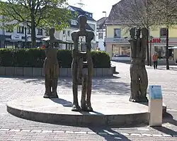 Die Bundestrilogie von Eberhard Linke wurde 1999 erschaffen. Mit Hilfe der Stiftung der Stadtsparkasse Hemer und einiger privater Sponsoren konnten die rund zwei Meter hohen Bronzeskulpturen 2001 an die Stadt Hemer übergeben werden. Der offizielle Titel des Kunstwerks lautet „Bundesdeutsche Trilogie zu Einigkeit und Recht und Freiheit“. Die Figur „Einigkeit trägt Vielfalt“ trägt ab der Hüfte drei Oberkörper, die untere Körperhälfte ist geschlossen. Die „Waage von Recht und Gerechtigkeit“ ist eine stilisierte Form der Justitia. Zwei verschiedene Gewichte sollen den Unterschied zwischen Recht und Gerechtigkeit darstellen. Anstelle verbundener Augen hat der Künstler direkt auf die Darstellung eines Gesichts verzichtet. Die dritte Skulptur heißt „Mühen der Freiheit“. Der Körper ist offen, auf Sprossen steigen dort lose Füße und Beine hinauf. Die Figur soll das Wechselverhältnis zwischen dem Erlangen der eigenen Freiheit und der Toleranz für andere verdeutlichen. Die drei Skulpturen sind auf einer runden Betonplatte montiert und wurden 2003 mit Hecken eingefasst.[1]