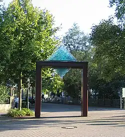 Das Stadttor von Udo Unterieser, das die Stiftung der Stadtsparkasse Hemer finanzierte, wurde am 16. Mai 1997 enthüllt. Das Tor war 5,5 Meter hoch und vier Meter breit und bestand aus Lärchenholz, wodurch die Verbindung zum Hemeraner Waldreichtum geschaffen werden sollte. Im Oberteil waren Glasscheiben eingefasst, die das Sonnenlicht brachen und somit Farbenspiele an den Innenseiten ermöglichten. Das Stadttor befand sich zwischen dem Gebäude der Sparkasse Märkisches Sauerland Hemer–Menden und der Christkönig-Kirche. Mitte 2020 wurde das Stadttor aus Gründen der Verkehrssicherheit gesperrt, da die Glasscheiben wegen Schimmelbefalls herabzustürzen drohten. Die Glaselemente wurden entfernt.[2] Der Holzrahmen wurde am 1. Oktober 2020 abgerissen.[3]
