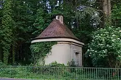 Ebenfalls im Jahr 1922 entstand das Nebengebäude als eingeschossiger Walmdachbau mit ovalem Grundriss. Es befindet sich nahe dem Wasserwerk in der befindet sich in der Kapellenstraße gegenüber dem Liebfrauensee.