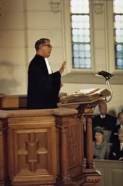 1974 wurde Berkhof Vorsitzender des Niederländischen Kirchenrats (Nederlandse Raad van Kerken) und konnte in diesem Amt seine internationalen ökumenischen Erfahrungen nutzen. Seine Amtszeit war von kirchlichen und gesellschaftlichen Diskussionen über Kernwaffen geprägt, und Berkhof bezog klar Position, womit er im konservativen kirchlichen Spektrum für Irritationen sorgte. Berkhof äußerte sich auch kritisch zur Trinitätslehre, ohne aber die Verbindung mit der calvinistischen Tradition abreißen zu lassen. Von den Bibelwissenschaften erhoffte er sich kritische Impulse für die Dogmatik. Damit fand Berkhof weniger in der konservativen Mehrheit seiner Kirche, dafür aber in der liberalen Minderheit Resonanz; diese beherrschte allerdings die theologische Diskussion.[8] Berkhof lehnte die Prozesstheologie ab, die die These vertritt, dass Gott selbst in Veränderung begriffen sei und durch Menschen „verwesentlicht“ werde; er hielt an der traditionellen christlichen Lehre fest, dass Gott der Menschheit und der Welt in souveräner Freiheit gegenüberstehe.[9]