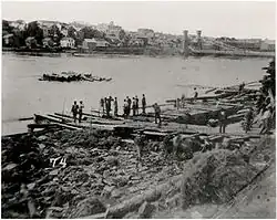 Bis zum Herbst 1870 waren das Flussbett und die Uferbänke jedoch stabilisiert und ein hölzernes Wehr schützte die gebeutelten Saint-Anthony-Fälle gegen die weitere rückschreitende Erosion. Das Wehr bedeckte die zerklüfteten Felsen der Fälle und zähmte das tänzelnde Wasser.[6]