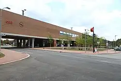 - Die Anbindung an den öffentlichen Verkehr erfolgt über die Pottendorfer Linie, die den Ort mit Wien Hauptbahnhof (ehem. Südbahnhof) und Wiener Neustadt an Werktagen im Stundentakt verbindet. Der 2018 eröffnete neue Bahnhof befindet sich in Hochlage als Viadukt, er ist mit Sichtziegeln ausgeführt, dies erinnert an die Tradition der Ziegelherstellung.