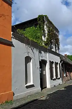 Das zweigeschossige, von der Straße zurückgesetzte Haus wurde im Jahr 1787 vom Töpfer Johann Joachim Bahlke in Fachwerkbauweise gebaut. Ein schmaler Anbau wurde zur Straßenflucht hin errichtet. Im Jahr 1866 wurde zudem ein zweieinhalbgeschossiger, verputzter Anbau hinzugefügt, der zu Wohnzwecken diente. Zusätzlich wurde eine Begrenzungsmauer mit Toröffnung errichtet.