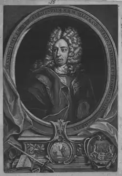 - ↑ Geburtsdatum und Geburtsort werden in der Literatur höchst unterschiedlich angegeben. Besler (Lit.), der sich auf Auskünfte aus dem Familienarchiv beruft, sagt 15. Dezember 1670 in Wismar; das Svenskt biografiskt handlexikon (siehe Literatur) hat Stockholm 1663; hier nach Kinzinger 1988, S. 659 und Conrads 2009 (Lit.)