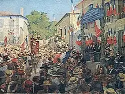 Das von ihm gemalte Bild Präsident Fallières von seinen Landsleuten gefeiert erregte ein unerwartetes Aufsehen.