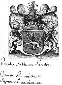 • Jean-Charles, 1626 Seigneur et Vicomte de Comborn, Marquis de "Chambret"[20]. Erhält 1627 Güter seines Vorfahren François; ⚭ 22. Mai 1642[21] Marie de Castelnau, Schwester des Castelnau-Bochetel, Sieur de Mauvissière