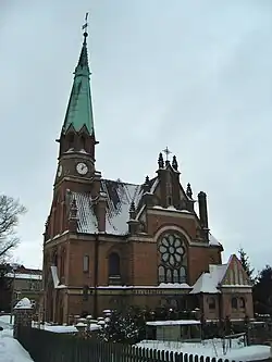 Der Kirche ist ein neogotischer Backsteinbau. Sie verfügt über ein Kreuzgewölbe und ist farbenprächtig ausgemalt. Die Holzeinbauten sind im hanseatischen Stil gefertigt.