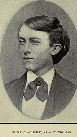Henry Clayton Frick war der Sohn von John Wilson und Elizabeth (Overholt) Frick. Sein Vater hatte schweizerische und seine Mutter deutsche Vorfahren. Er hatte drei Schwestern und zwei Brüder. In den Sommermonaten musste er auf der Farm mithelfen und im Winter war Zeit für die Schule. Mit 14 Jahren war er Lehrjunge in dem Kolonialwarengeschäft von Overholt, Shallenberger and Company in Mount Pleasant, Pa. und mit 19 lernte er die Buchhaltung in der Firma seines Großvaters Overholt's Flouringmill and Distillery in Broad Ford, Pa., dem Zentrum des Kohle-Distrikts der Connellsville-Region. Mit einer Voraussicht, die ungewöhnlich in so jungen Jahren ist, erkannte er die Möglichkeiten, welche in der Ausbeutung der Kohlevorkommen lagen im Hinblick auf die wachsenden Eisenwerke in Pittsburgh.