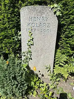 Henry Kolarz lebte zuletzt in Aumühle bei Hamburg.[3] Seine letzte Ruhestätte fand er auf dem Friedhof Bernadottestraße in Hamburg-Ottensen.