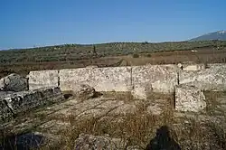 Wegen der Nähe zum Heraklestempel glaubt man, dass im Peribolos die zwei Heroen Eurytos und Kteatos verehrt wurden. Ein Hügel auf dem Nachbarfeld gehört wahrscheinlich auch zu dem Heiligtum. Vielleicht lag hier das von Pausanias erwähnten Grabmal der beiden Heroen.[5]