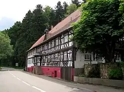 Das unter Denkmalschutz stehende Gebäude ist ein Fachwerkbau unter einem Längsgiebel in unmittelbarer Nähe der Burgruine Hohengeroldseck.