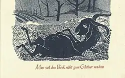 - Ende 1940er Jahre - ‚Der Zirkus‘, 16 Holzschnitte, und ‚Besuch im Zoo‘, 15 Linolschnitte, mit Versen von Johanne von Gemmingen, erschienen im Werner-Tapper-Verlag Ulm - ‚Der Zirkus kommt/In der Manege‘ Illustrationen mit Versen von Johanne von Gemmingen, im Spectrum-Verlag Stuttgart