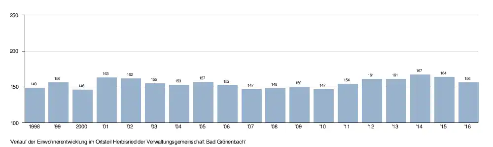 Gemäß der Einwohnerstatistik Bad Grönenbachs lebten im Jahr 2014 insgesamt 167 Personen in Herbisried. Die Einwohnerentwicklung ist dabei in den letzten Jahren konstant bzw. steigt leicht an.[3]
