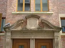 Die Fassade des dreigeschossigen Gebäudes ist symmetrisch angelegt: Kräftige neobarocke Gesimsbänder und eine Beletage mit aufwändiger, neobarocker Bauplastik unterteilen die Fassade waagerecht; in der Senkrechten wird sie von genuteten Pilastern und axial angeordneten Fenstern gegliedert. Die Mittelachse der Fassade ist durch einen Mittelrisalit mit Zwillingsfenstern besonders betont. Die an den Ecken des Mittelrisalits stehenden, neobarocken Pilaster werden zusätzlich durch neoklassizistische Akrotere über Triglyphen geschmückt.