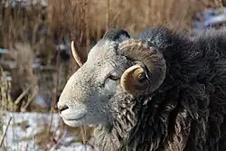 Das Herdwick ist ein mittelgroßes Schaf, dessen Wollfarbe bei ausgewachsenen Tieren von hell- über dunkelgrau bis blaugrau reicht. Frisch geborene Lämmer sind zunächst grau bis schwarz.[2] Einjährige Herdwicks haben eine dunkelbraune Wolle, die in den weiteren Lebensjahren zu hell- bis dunkelgrau aufhellt. Die Beine sind bis zum Vorderknie beziehungsweise bis zum Sprunggelenk bewollt, die Farbe der auffallend stämmigen Beine ist weiß. Der Kopf ist ramsförmig und sollte ebenfalls weiß oder hellgrau sein. Schwarze Merkmale an Kopf oder Beinen entsprechen nicht dem Rassestandard.[3] Böcke weisen Hörner auf, die schneckenförmig wachsen und haben eine abfallende Rückenlinie. Bei Böcken sollte außerdem die Wolle am Hals mähnenartig verlängert sein.[4] Weibliche Tiere sind im Gegensatz zu den Böcken immer hornlos.[3] In der Regel bringen die Mutterschafe nur ein Lamm zur Welt, das im April geboren wird. Auf Grund der rauen Wetterbedingungen überlebt häufig eine große Zahl der Lämmer ihre ersten Lebensmonate nicht.