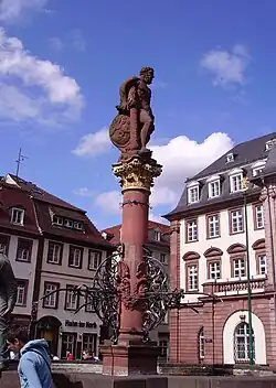 - ↑ Der Herkulesbrunnen auf dem Heidelberger Marktplatz. In: heidelberg.gequo-travel.de. Archiviert vom (nicht mehr online verfügbar) am 10. April 2016; abgerufen am 10. April 2016. Info: Der Archivlink wurde automatisch eingesetzt und noch nicht geprüft. Bitte prüfe Original- und Archivlink gemäß Anleitung und entferne dann diesen Hinweis.