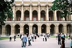 Der Herkulessaal befindet sich im Festsaalbau, der den nördlichen Abschluss der Residenz zum Hofgarten hin bildet. Dieser Trakt war unter Ludwig I. erbaut und enthielt ursprünglich eine Raumfolge, die im Thronsaal gipfelte. Im Dachbereich hatte Ludwig II. einen Wintergarten mit künstlichem See, Maurischem Kiosk, Fischerhütte und exotischer Flora und Fauna anlegen lassen, der jedoch schon 1897 abgetragen wurde. 1944 wurde auch dieser Flügel der Residenz durch Bombentreffer schwer beschädigt, jedoch nicht stärker als andere Teile, die bald nach dem Krieg unter Verwendung ausgelagerter Innenausstattung leidlich originalgetreu wiederhergerichtet wurden. Auch die Festsäle waren nicht unrettbar verloren, doch standen die Kunst des 19. Jahrhunderts und speziell die klassizistisch-historistische Münchner Schule tief im Kurs und so entschied man sich, wie in vielen anderen Fällen (z. B. Neue Pinakothek, Innenausstattung der Glyptothek, Allerheiligen-Hofkirche), gegen einen Wiederaufbau.