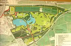Die Parkentwurf von Hans Klüppelberg knüpft an die Heimatschutzbewegung an und ist ein Zeugnis der Landschaftsgestaltung in der Zeit des Nationalsozialismus. Nach dem Vorbild Willy Langes wurde auf „fremdländische“ Pflanzen verzichtet. Der Pflanzensoziologe Reinhold Tüxen erstellte dazu Empfehlungen. Der Park geriet zur ideologiekonformen Grünanlage.