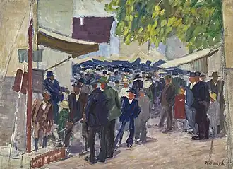 - Auf dem Volksfest, aquarellierte Kohlezeichnung, 64,7 × 48,8 cm, Städtische Galerie im Lenbachhaus (Ankauf 1932, Inv. G 2765)