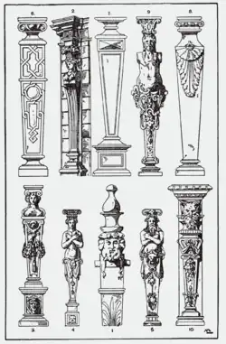 Tragende Steinpfeiler an Gebäuden, die am oberen Ende mit einem Frauenkopf abschließen, werden als Karyatidherme bezeichnet. Diese wiederum leiten sich von Karyatide und Herme ab. Anders als bei Karyatiden fehlt der Körper der Frauengestalt und diese ist hermenartig auf ihren Kopf und Schultern, ggf. den Oberkörper, reduziert. In der Architektur finden diese auch im 19. Jahrhundert im manieristischen Stil sowohl in repräsentativen Wohnbauten als auch in Immediatbauten Anwendung. Dabei wird geradezu kanonisch auf die Vorbilder der Karyatiden des Erechtheions auf der Akropolis in Athen zugegriffen, während ältere Typen der Kore hierbei vergleichsweise selten vorkommen. Es kommt auch ihr männliches Pendant, der Atlant, in dieser Form vor. Im Unterschied zur Karyatide ist er aber zumeist gänzlich unbekleidet.