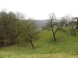 Von der ehemaligen Burg Hohenriet (der Name bedeutet gerodete Höhe) sind nur Mauerreste am östlichen Ende von Vorhof, am Rande des steil abfallenden Berges zum Buchbach hin, erhalten. Die Burg wurde erstmals 1140 erwähnt und 1528 zerstört.
