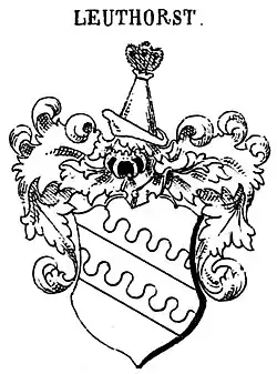 Das Wappen (nach einem Siegel des Claus von Leuthorst von 1565) zeigt zwei schrägrechte wolkige roten Balken. Auf dem Helm ein hoher gekrempelter Hut, oben mit Pfauen- oder Straußenfedern besteckt.