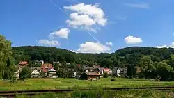 | Der Herrenberg mit Niedersteinbach im Vordergrund | ||