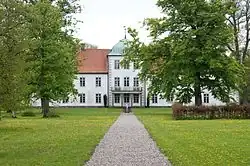 Mit dem Neubau des Herrenhauses wurde nördlich des Baus ein großzügiger Garten im Stil des Barock angelegt. Der Garten in direkter Nähe des Hauses bestand aus großen, mit Blumenmustern bepflanzten Parterres und einer zentralen Sichtachse, die durch eine Allee gegliedert wurde und 500 Meter in die Ferne führte. Der barocke Garten wurde im 19. Jahrhundert in einen Landschaftspark umgestaltet, die Mittelallee von 1737 blieb allerdings unangetastet und ist bis heute weitgehend erhalten.