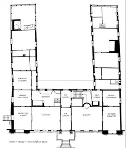 Die Hauptfassade des U-förmigen Gebäudes ist zur Hafeneinfahrt nach Bergen gewandt. Sie ist größer als das Haus selbst und im Rokokostil entworfen. Um eine perfekte Symmetrie der Fassade zu erschaffen, sind einige Fenster zum Herrengarten nur auf die Fassade aufgemalt.